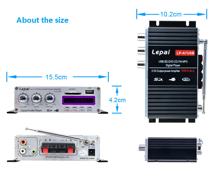LP-A68 je multifunkční audio zesilovač, který podporuje přehrávání FM, MP3 s SD kartou a USB. Je vybaven miniaturním IR dálkovým ovladačem, který lze snadno přenášet a používat.
