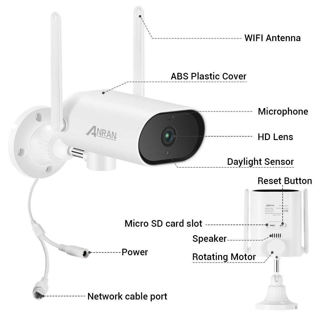T01-H20W otočná 2MP HD WiFi IP P2P bullet venkovní kamera Micro SD