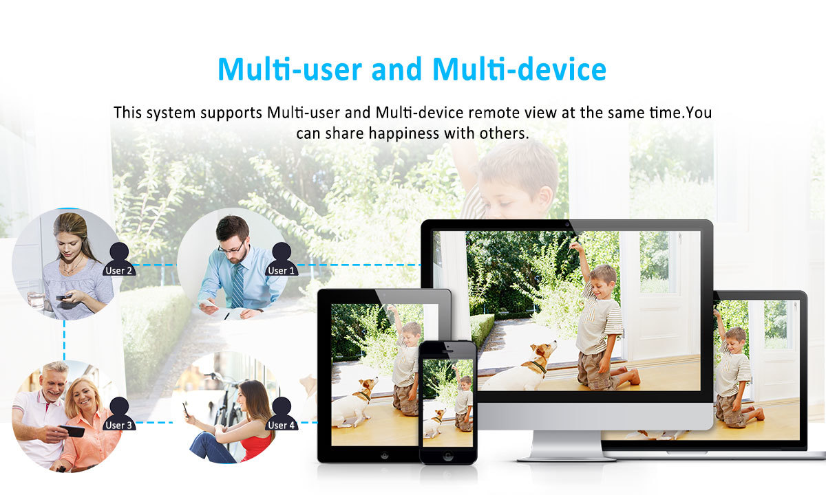 Bezdrátový kamerový systém umožňuje vzdálený přístup k vašim kamerám a nahrávání videí kdykoli, kdekoli přes zdarma dostupnou aplikaci. Jsou dostupné tři aplikace pro iPhone a Android zařízení.