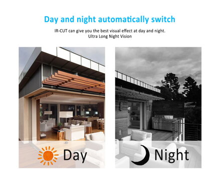 Kamery jsou vybaveny 36pcs IR LED diodami, které slouží k natáčení čistých a ostrých videí v noci nebo při nízké viditelnosti až na 25 m. Filtr IR-Cut automaticky přepíná mezi denním a nočním režimem, čímž zabraňuje ztrátě barev v průběhu dne a zlepšuje kvalitu videí v průběhu noci.