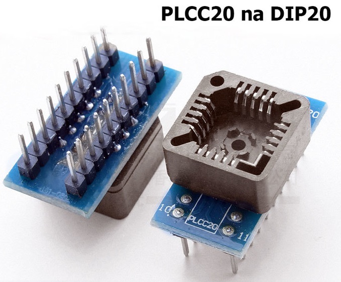 Testovací/programovací sokl pro integrované obvody (mikrokontroléry) v SMD PLCC20 na 20 pin DIP20 DIP-20.