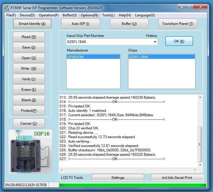 - Online nebo offline čtení firmwaru originálních základních desek LCD monitorů a televizorů, podpora TPV, Proview, Samsung, LG, ACER, LENOVO, HP, IBM, BENQ, HKC, Hisense, Skyworth, Konka, Changhong, TCL , Haier, Hisense a dalších hlavních značek, podpora NOVATEK, MTK, MST, GENESIS, TSUM, SE, FT, REALTEK, WINBOND, WELTEND, MYSON, China and Asia micro, PIXELWORKS a dalších řešení čipových sad, můžete použít oficiální software nebo nezávislý software ISP s přihlédnutím k funkční integritě a snadnému používání;