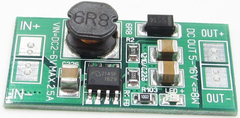 Miniaturní zvyšující DC/DC měnič Step-up booster z 2V-6.5V na 5V