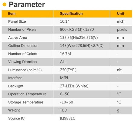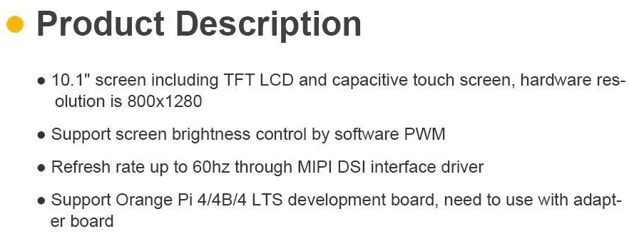 10.1"dotykový displej pro Orange Pi4 /PI4 Lts/PI4B