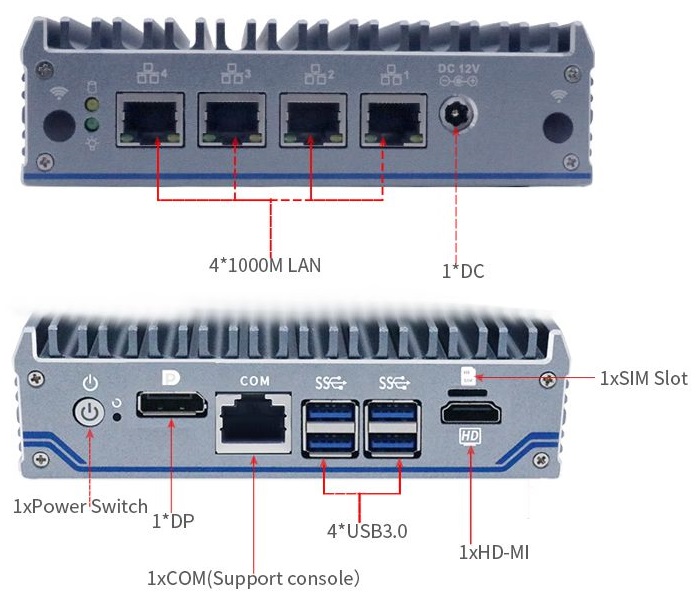 • 1x M.2 2242 B-key Slot(Supports 4G), Embedded SIM slot