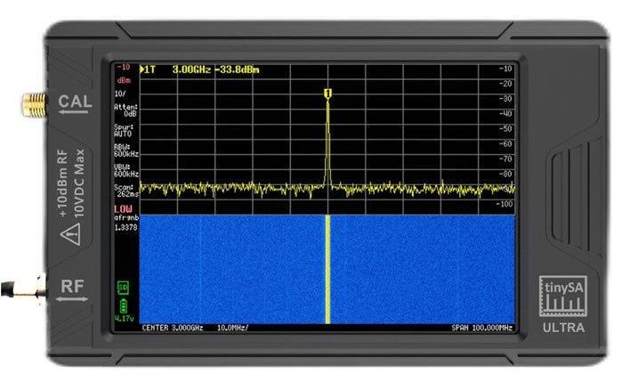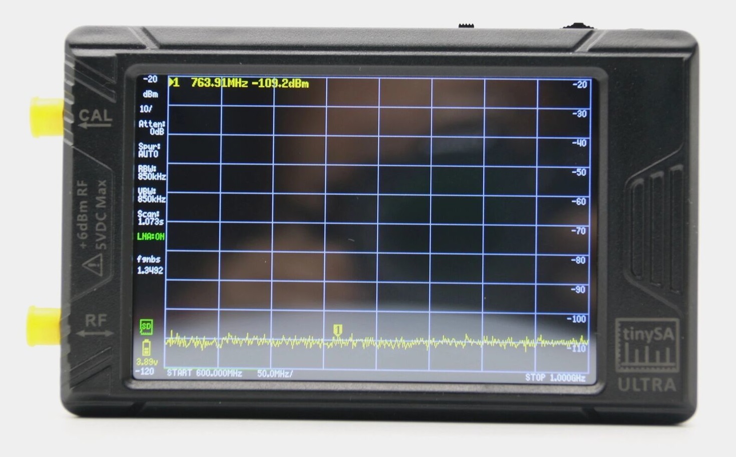 tinySA ULTRA je přenosný spektrální analyzátor nebo generátor signálu který je schopný provádět široký rozsah měření, a to 100 kHz ~ 800 MHz, 800 MHz ~ 5.3 GHz.