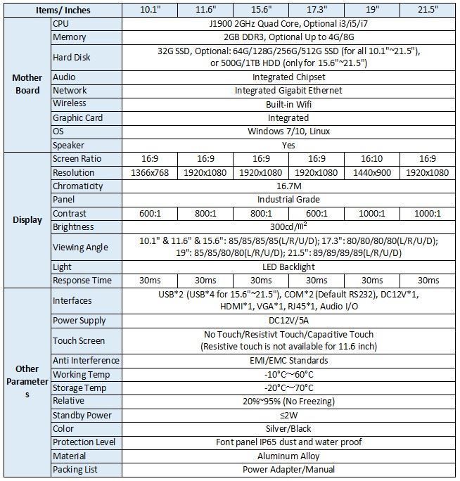 NXT101F, 10.1 inch IP65 Industrial AIO Panel PC:
