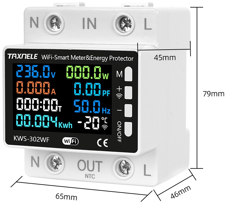 Tuya WiFi 8v1 elektroměr, ovládání aplikací, měřič napětí a proudu 170-270V/63A